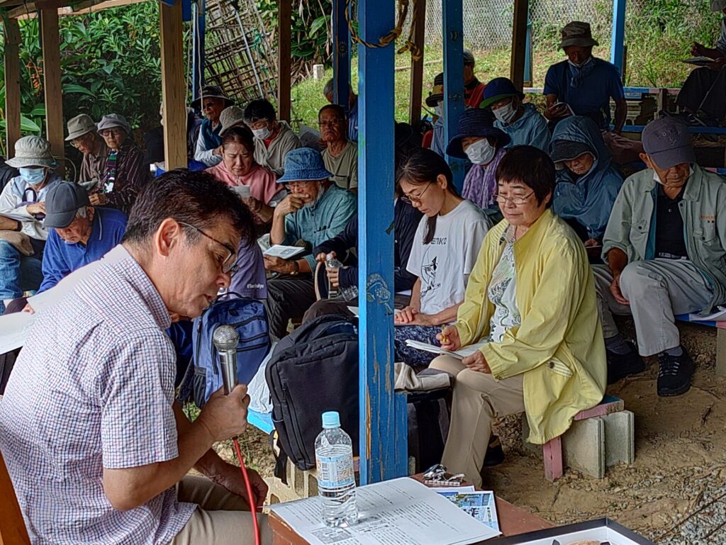 1回目と2回目の座り込みの間の時間を使っての講話(約70分)はあっという間で、もっと聴きたい思いでしたが、参加者たちは、二度と戦争を繰り返さない決意を新たにしつつ、2回目の座り込みへと向かいました。
