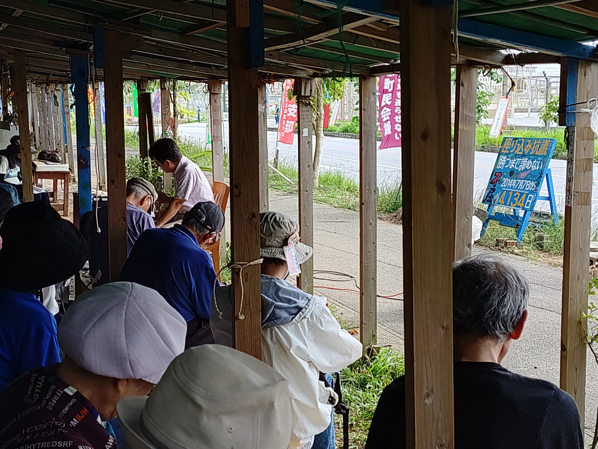 1回目と2回目の座り込みの間の時間を使っての講話(約70分)はあっという間で、もっと聴きたい思いでしたが、参加者たちは、二度と戦争を繰り返さない決意を新たにしつつ、2回目の座り込みへと向かいました。