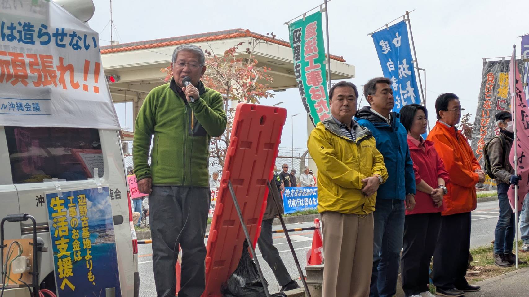 3月7日今年になって初のゲート前県民集会。名護市長選挙や衆議院選挙があって久しぶりのゲート前集会。550人集まった。仲間の顔がたたかう励みになる。衆院選挙で惜敗した、赤嶺政賢さんは[大変残念で悔しい結果であるが、沖縄の米軍基地と自衛隊の強化といった矛盾は消えない。その矛盾がある限り県民は必ずたちあがる]と力を込めて訴えた。そのとおり。辺野古も普天間も使うと米軍は言う。日本政府はそんなことはないと。政治とは国民をだますことか?ウソはいつか必ず露呈する。県民をだまして基地つくることはできない。ウソとペテン、サギに負けずに頑張ろう。
